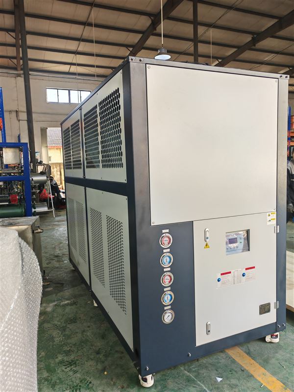 在风冷式冷水机的选型中,选择适合自己的生产需要的型号至关重要,在风冷式冷水机组的整体机身中含有不锈钢水箱和水泵,不需要再多加冷却塔来排热.安装及挪动十分简单方便.但它对环境要求很高,因为这是以热风循环来制冷的,假如机组装在车间自然通风效果不佳的环境下,会直接影响到冷水机制冷的实际效果